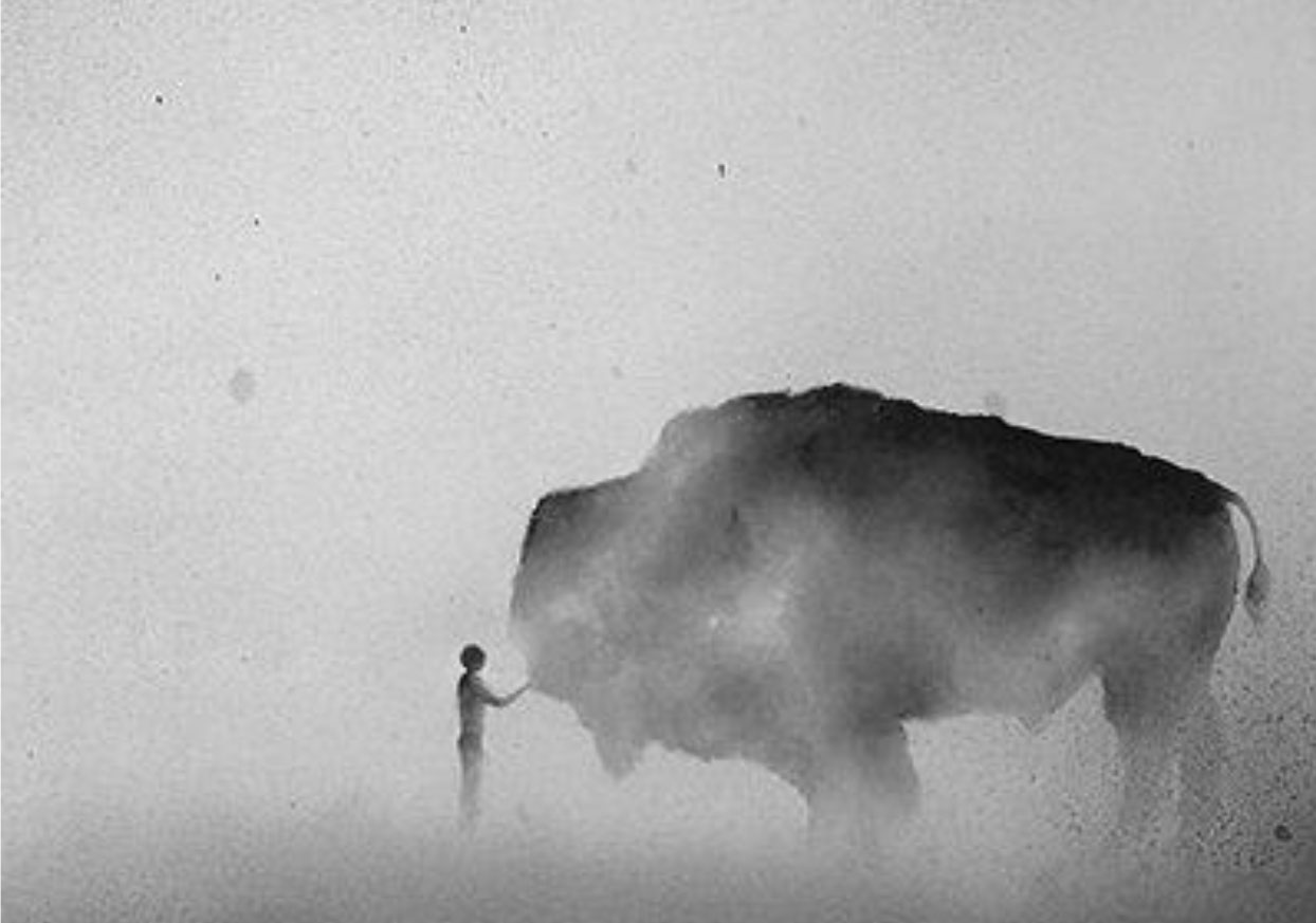 Dicen que el búfalo de metal es orden, disciplina… eso he visto escrito mientras buscaba información en google para preparar este mensajito de Losar. Mientras estaba en ello y buscando también imágenes apropiadas me encontré con estas imágenes que al se en grises me remitían a la idea del metal. También eran ligeras… muy aguadas. El niño besando el hocico de ese animal tremendo en tamaño y a la vez era como una sombra.